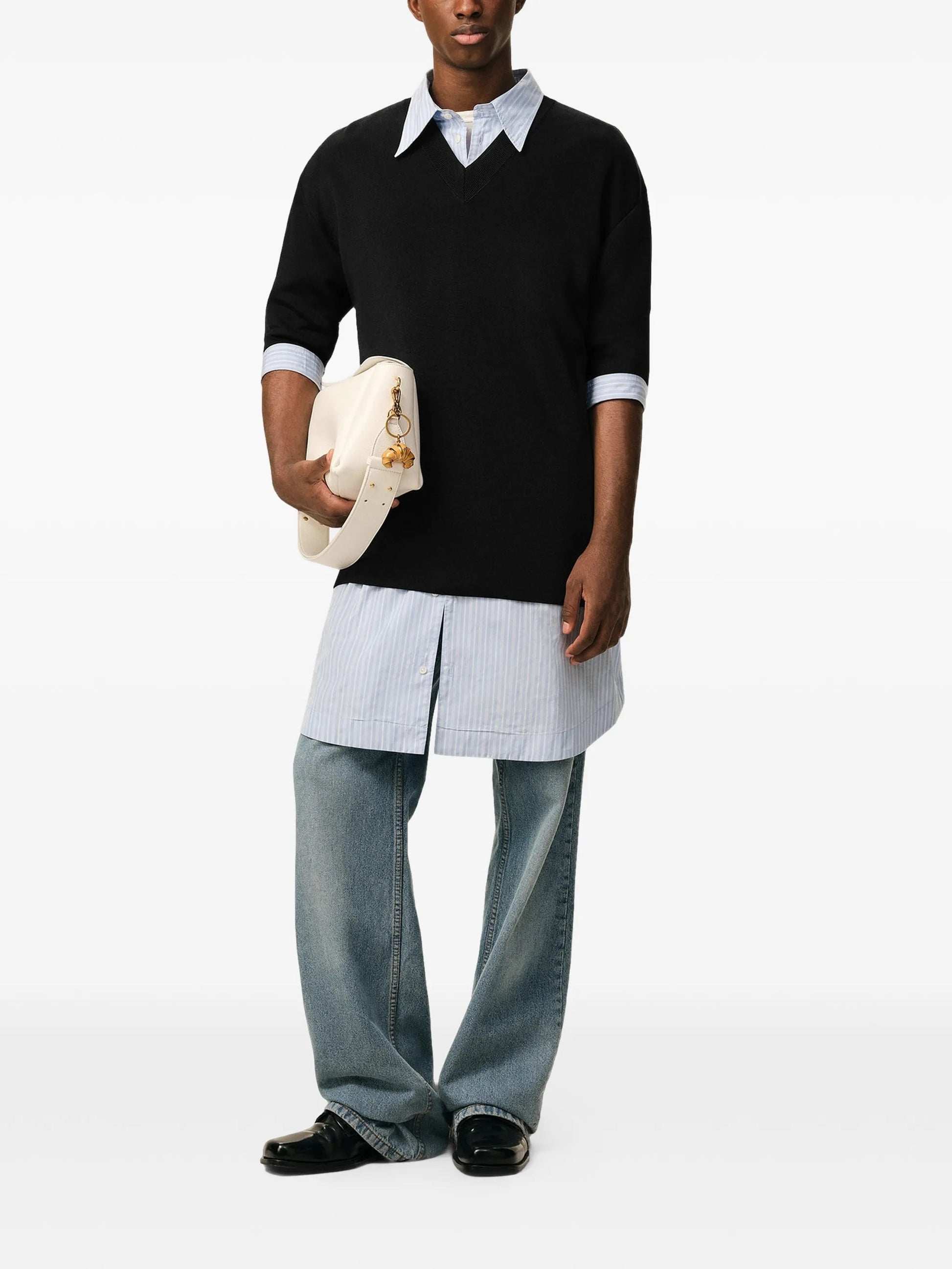 SHORT SLEEVES V NECK SWEATER